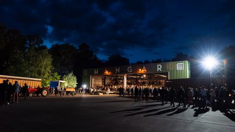 De industriële schuifdeuren van deze oude F-16-hangar vormen samen de 30 meter brede entree tot de grote ruimte van 650m2. De handige kantoorruimtes zijn tegelijkertijd ideale breakout-ruimtes en het geheel samen is een droom van een congreslocatie. Óf een onvergetelijke plek voor jouw personeelsfeest met 800 feestgangers. Gecombineerd met Hangar 11 en de andere nabijgelegen locaties zet je in een handomdraai een festival of beurs neer!